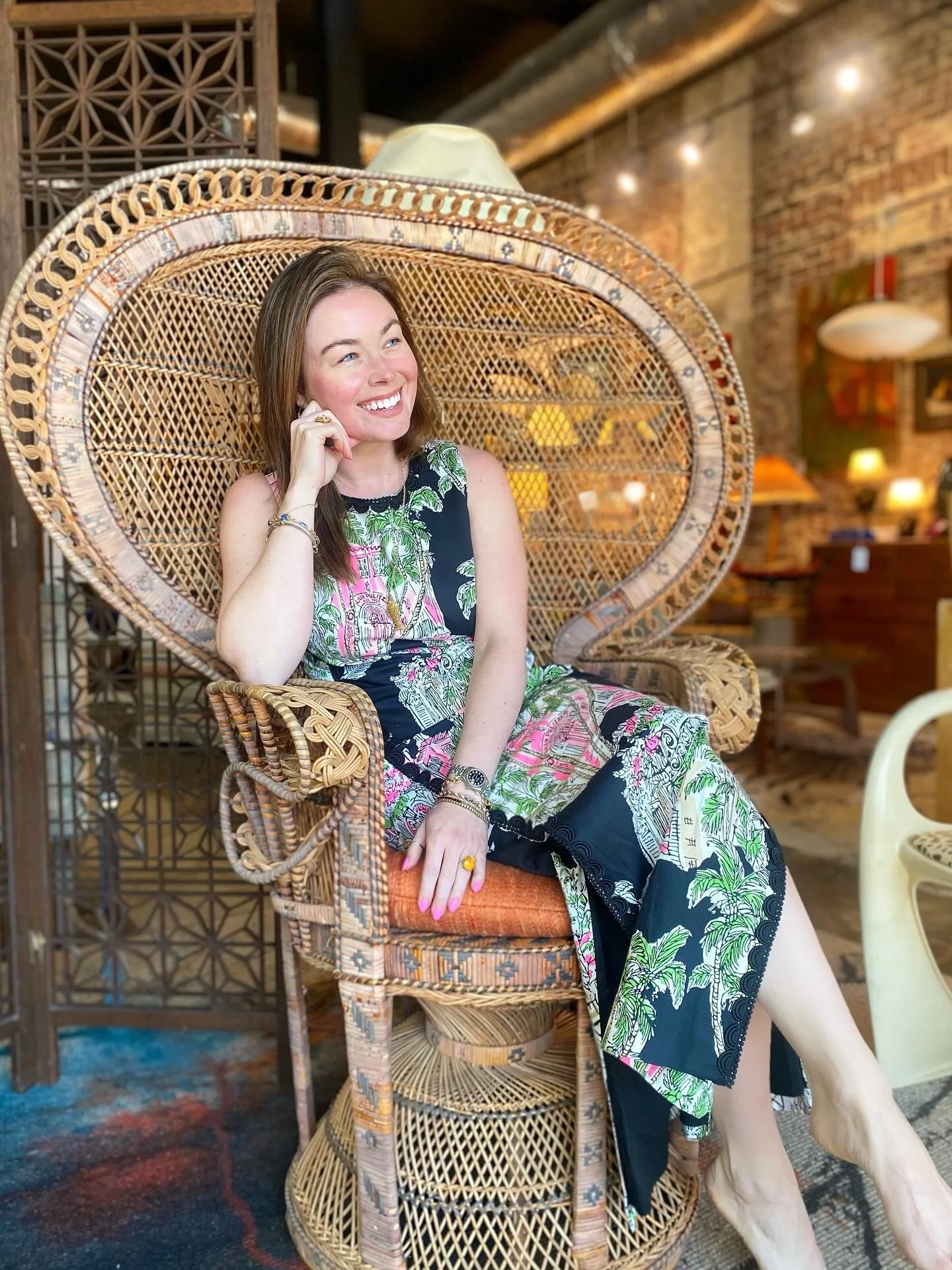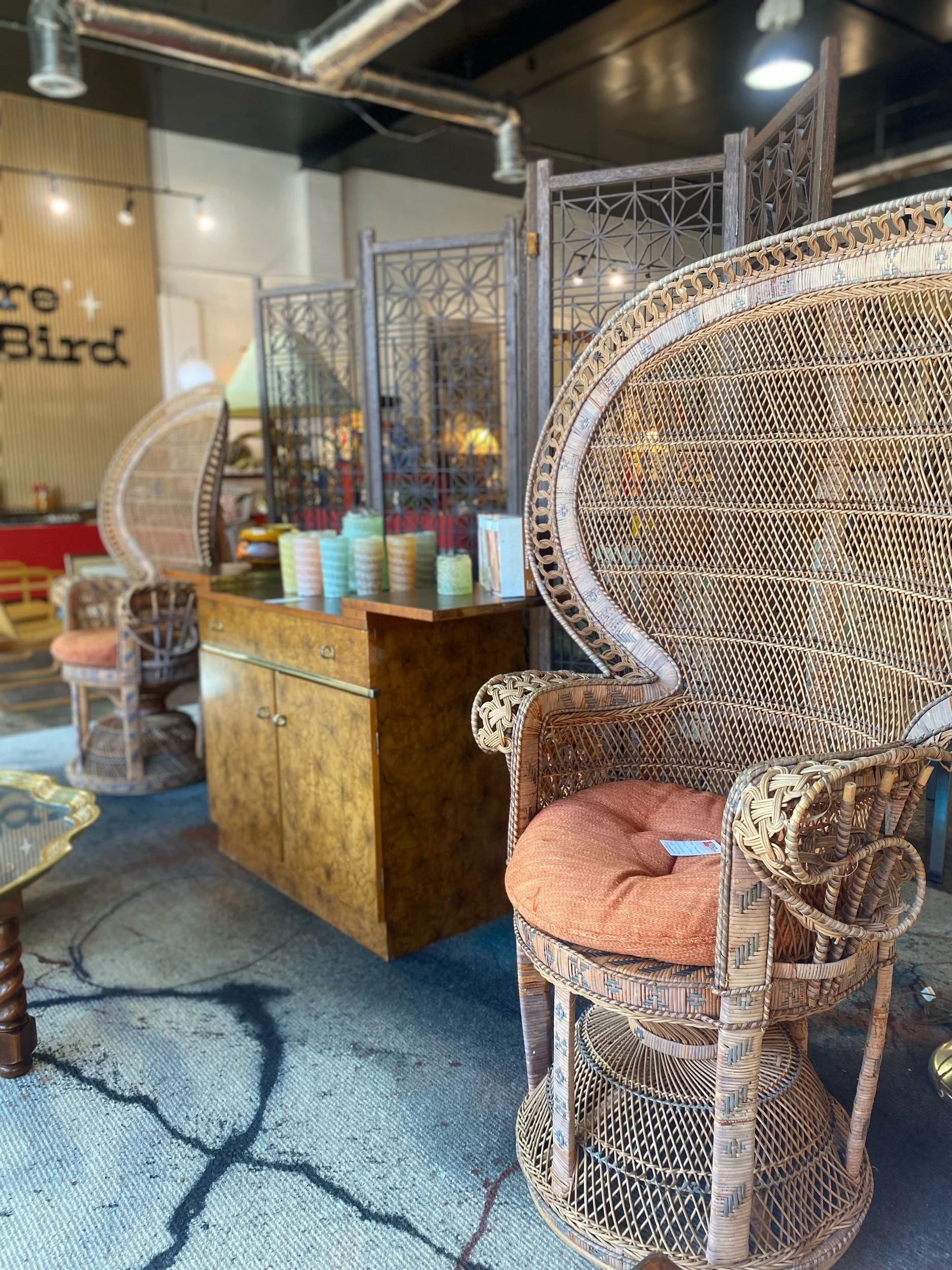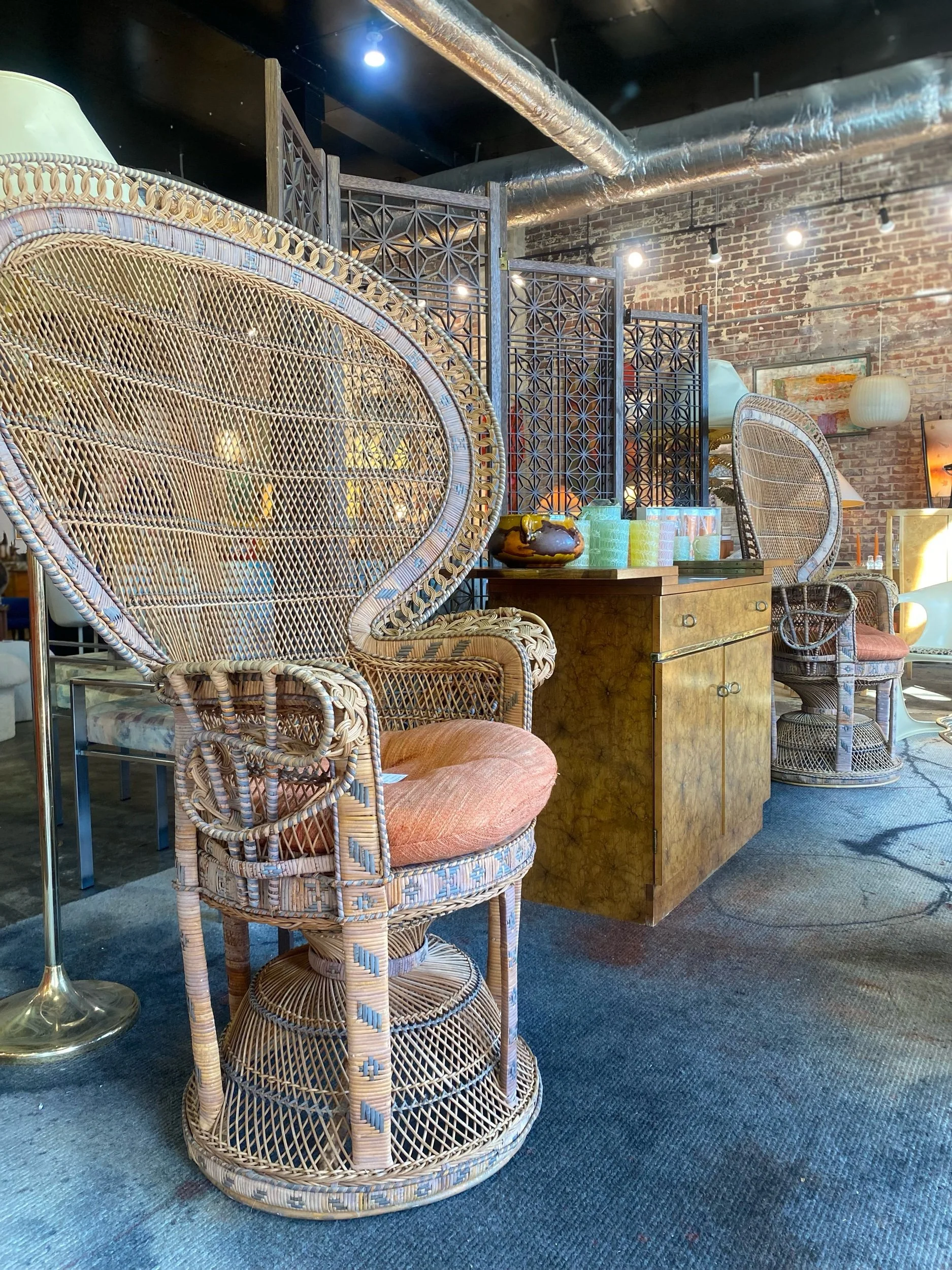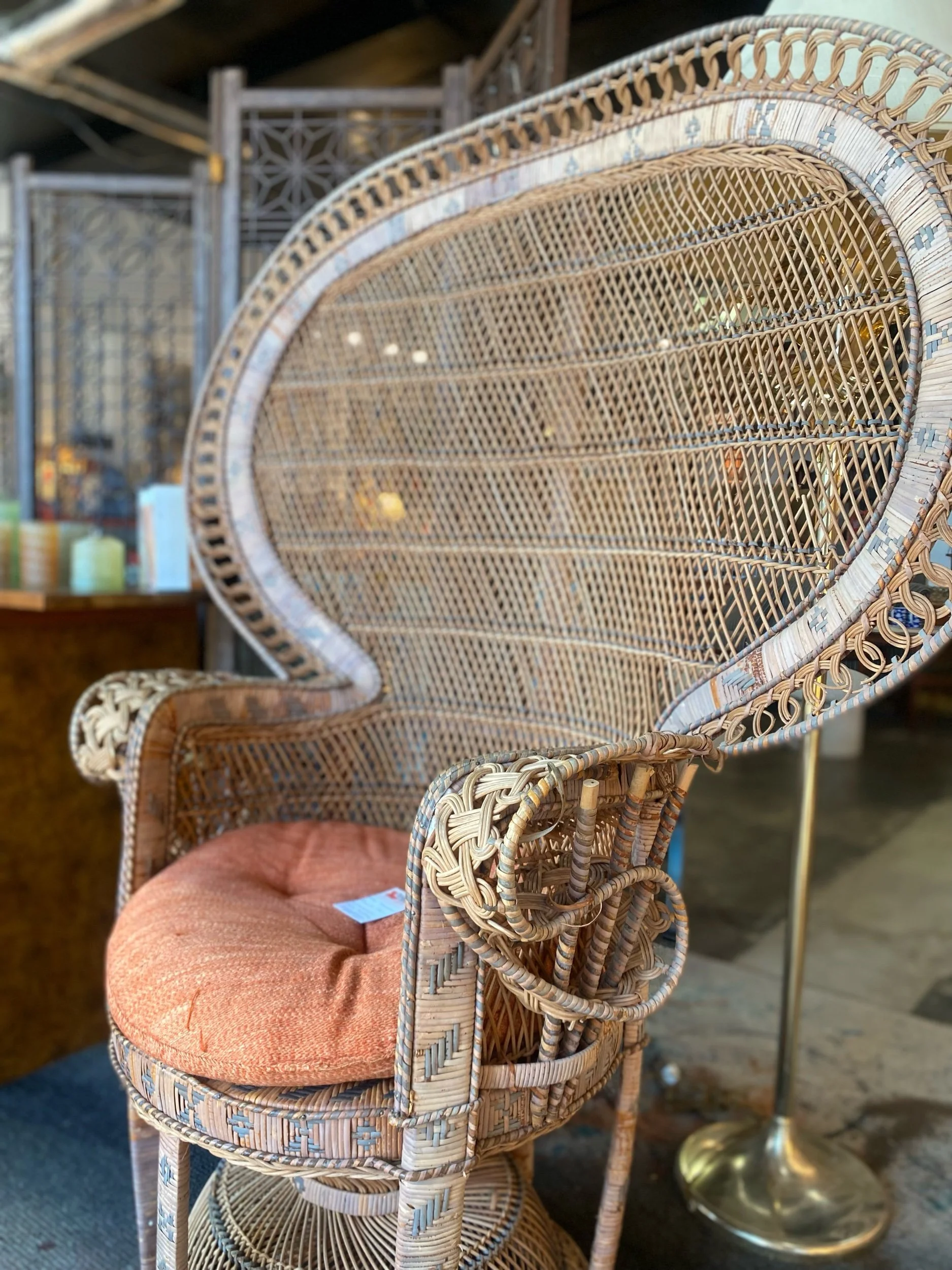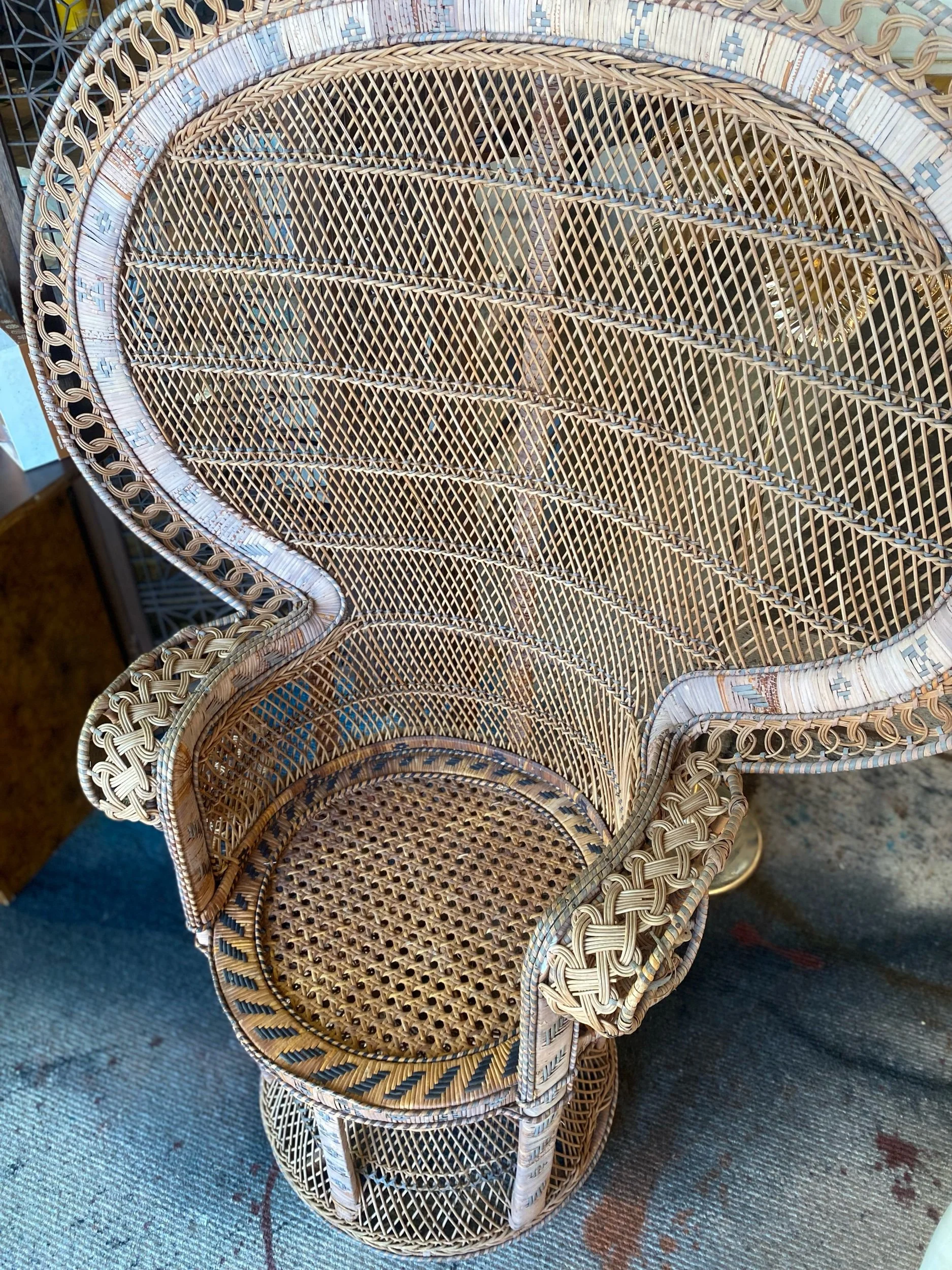 Mild patina to wicker and small separation under arm, does not affect use